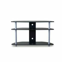 Clean lines and a display of natural wood grains make the Arend TV stand a cool addition to any space. This solid MDF wood stand is fitted with two open shelves to store DVD players, game consoles, and more. Additional storage space is provided by four shelves concealed behind a pair of doors. A stunning oak finish showcases the natural grain patterns of the wood, giving the piece a rustic touch. Dark ebony wood legs and black metal handles complete the look. The Arend TV stand is made in Malaysia and requires assembly. Dimensions: 23″ High x 59.6″ Wide x 15.7″ Deep; Left&Right Upper Shelves: 6.5″ High x 18″ Wide x 11.75″ Deep; Middle Shelves: 6.5″ High x 21″ Wide x 13″ Deep; Legs: 7.5″ High