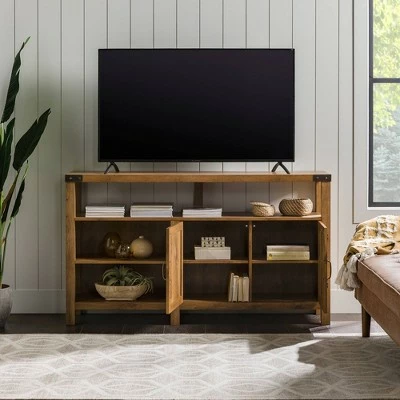 Revamp a dull corner with some country cottage flair with Saracina Home’s 58″ Charming 2 Door Farmhouse Highboy TV Stand. A chic combo of open and closed storage is yours to use however you please! Try it out as a TV stand, a storage console, or even an entryway credenza. Cord management ports keep all your cables neat and tidy. And with room to accommodate TVs up to 60” just think of all the fun-filled movie nights or home décor makeovers that are in store.