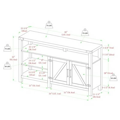 - Dimensions (Overall): 33 Inches (H) x 58 Inches (W) x 16 Inches (D)