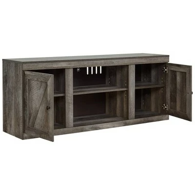 Keep your media accessories organized with the introduction of this TV Stand that comes with 2 doors storage space and a removable center shelf. Constructed from engineered wood, it is accented with a gray finish.