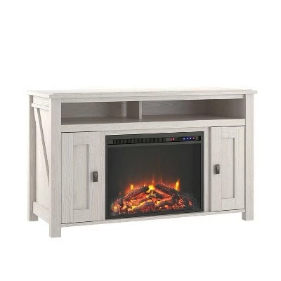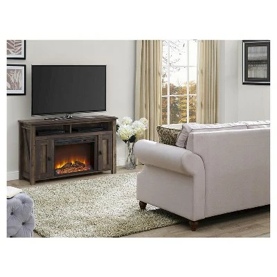 Create a warm and inviting atmosphere in your home with the Room & Joy Brookside Electric Fireplace TV Console. The Console includes a remote controlled 23″ electric fireplace insert that gives a realistic glow of a wood burning flame without all the cleanup and work of a wood burning fireplace. This fireplace will heat up a room up to 400 sq. ft. to the perfect temperature from 72° to 82° or use it to create a relaxing ambiance with its multiple light settings without the heat option. The LED light source boast up to 50,000 hours of life for a fireplace that will last for years to come. This TV Console is built to accommodate flat panel TVs up to 50″ wide and up to 55lbs. The Brookside also includes 2 side cabinets that conceal 4 storage shelves and a large open divided shelve for your cable box, DVD player or video gaming system. After proper assembly by 2 adults, this unit measures to be 29.125″h x 47.6875″w x 15.6875″d and is crafted out of laminated MDF and particleboard with a metal frame insert.