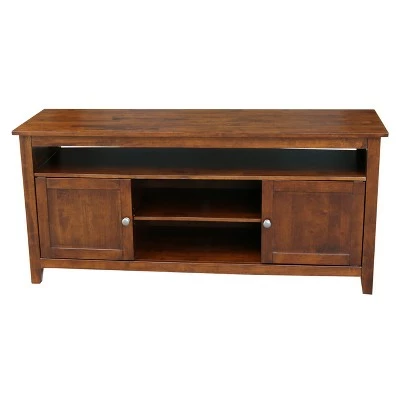 With a classic look and a forward attitude, the International Concepts Entertainment TV Stand with 2 Doors is just right for you. If you love the look of a classic entertainment center but want to accommodate a modern, slim and gigantic television set; this is the right TV stand for you. The stylish wood finish is richly attractive and the compartments, cabinets and shelves are designed to hold all of your accessories. The top is long and narrow which is ideal for your top-of-the-line set.
