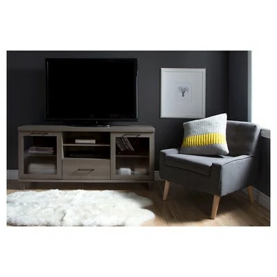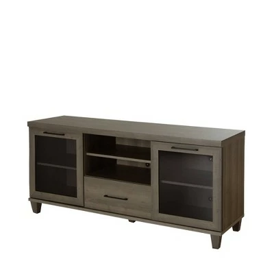 Give a stylish impact to your entertainment space with this Reflekt TV Stand With Drawers from South Shore. This clean-lined TV console featuring a stylish two-toned finish gives a chic update to any space. Equipped with a large, flat top, it is designed to hold TVs up to 60 inches. The two spacious drawers, each detailed with modern straight handles, and three open shelves provide good room for storing and organizing all your electronics, media devices and other accessories, while the raised wood- like construction offers extra durability and strength.