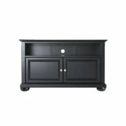 With the perfect fusion of function and style, this Alexandria TV Stand provides charm and plenty of storing options for your entertainment devices. Beautiful raised-panel doors strategically conceal various media paraphernalia, while adjustable shelving offers an abundance of versatility to effortlessly organize by design. Cord management systems help tame the unsightly mess of tangled wires. A warm hand-rubbed finish lends a contemporary look to this extraordinary piece of space-saving entertainment furniture.