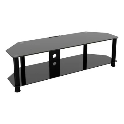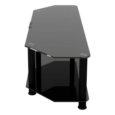 The SDC-1400 family is a simple, attractive, and versatile series of A/V stands and tables, in multiple sizes. The high quality, easy to assemble stands blend with virtually any decor and supports flat panel TVs up to 65″. The tempered glass and durable legs modernize any space while the angled corners provide multiple room placement options including into corners to maximize space and viewing angles. The bottom shelf is perfect for AV components such as Digital Receivers, DVRs, Blu-ray, Gaming Consoles, Speakers, Apple TV, Sonos devices, etc. Cable management through the center column delivers a tidy appearance. For TV Sizes: 32, 37, 39, 40, 42, 43, 46, 47, 50, 55, 60, 65. For TVs with wide feet, please measure the width of the feet to ensure it will fit on the stand.