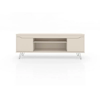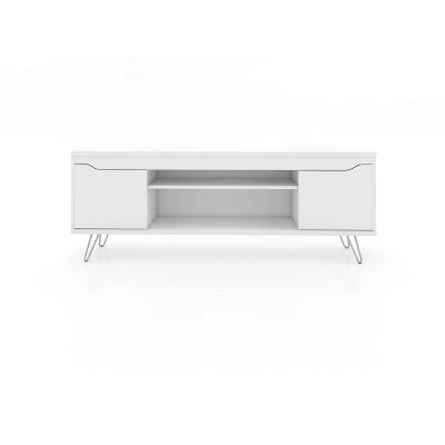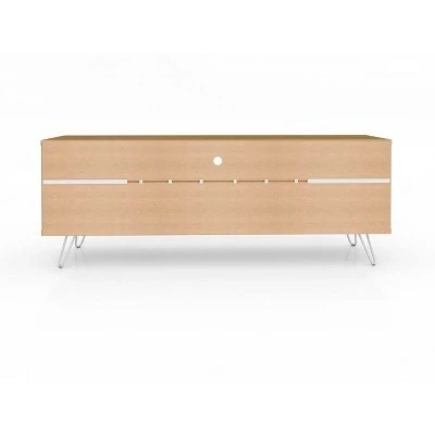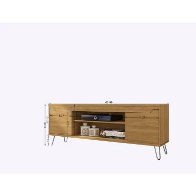 Finish off your space with the TV stand Mid Century Modern fans will appreciate and create the perfect living room entertainment mainstay for loved ones. Two center rectangular shelves store all your media accessories and essentials, while two concealed storage compartments keep things like books, magazines, or DVDs safely stashed away. With its clean lines, splayed metal feet, and sleek design, this piece will impress all your guests and become your best purchase.