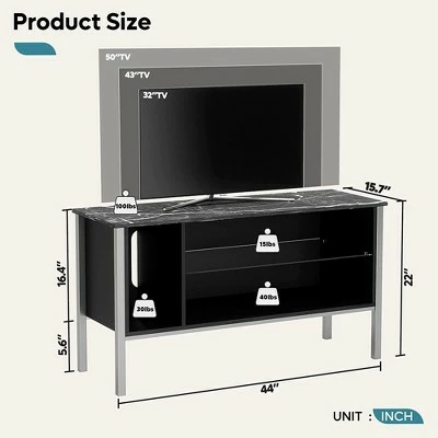 - ENDLESS OPTIONS: Store stereos, DVDs, routers, gaming consoles, electronics, books, magazines, controllers, and anything else while hiding wires and cables; (L x W x H): 44.09 x 15.75 x 22.05 inches; Weight: 45.64 pounds