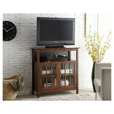 Sit back, relax and witness as the Big Sur Highboy TV Stand with Storage Cabinets by Breighton Home single handedly refreshes your home decor. Its modern traditional style offers simple clean lines and beautifully contrasting finishes that will have your guests in awed. This entertainment unit was carefully crafted with solid pine that is finished with a rich birch veneer and tempered clear glass, making this item easy to maintain and long lasting. The middle shelf offers plenty of space for your game consoles or cable box. With a roomy two door cabinet, you will be able to store your much needed electronics or favorite collectibles right at your fingertips. The smooth round knobs add to its elegant design while making it relatively easy to open the cabinet doors. Inside the cabinet there is a shelf that optimizes the space available inside while allowing for two cable management holes that makes arranging your cables a breeze. Bring home and enjoy your favorite TV series in style. Its assembly is worth every step! Available in multiple finishes and ready to become a staple in your ensemble. Look for additional furniture items from the Designs2Go Collection by Breighton Home. Each sold separately.