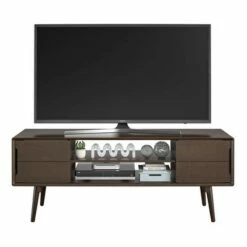 Give your living room or entertainment space a retro look with the Novogratz Brittany Turntable Stand. The beautiful finish on wood veneer gives the look and feel of real wood and pairs with the angled real wood legs for a trendy mid-century modern look. The Stand is the perfect size to place your record player and keep your albums organized in the lower cubby with metal record dividers. Store away remotes and cables in the convenient drawer. Complete your space with the entire Brittany collection (each sold separately). The Stand ships flat to your door and 2 adults are recommended to assemble. The Stand can support up to 50 lbs. while the lower cubby can hold 40 lbs. The drawer can hold up to 15 lbs. Assembled dimensions: 30”H x 19.88”W x 17.72”D.