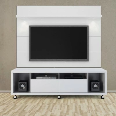 - Chic entertainment media unit includes a rectangular TV stand and floating wall TV panel