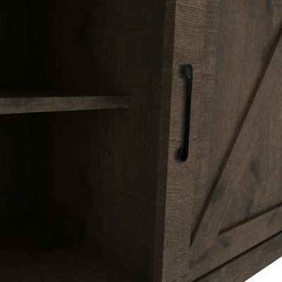 Center your entertainment area with a sturdy media console in a comforting rural design that is sure to compliment your home. This handsome console wears a dark dusty oak finish, a convenient cord management system, and contains more than enough storage for all your media needs. The usefulness of this piece is just as at home in a hallway, with an ideal surface to display your favorite items and to provide extra storage wherever you need it.