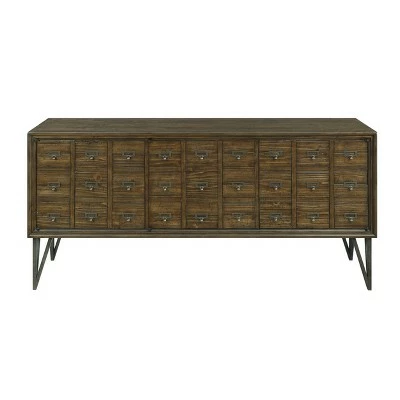 With the look of a vintage card catalog, our Three Door Media Console finished in rich Oxford Distressed Brown will make an outstanding focal point for your den, family room or entry. The spacious interior features two adjustable shelves and a cord management system to keep all your wires and components neatly tucked away, making entertainment a breeze!