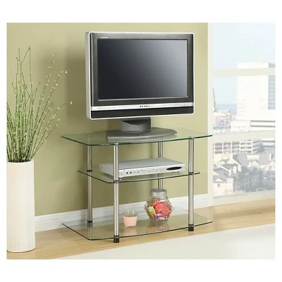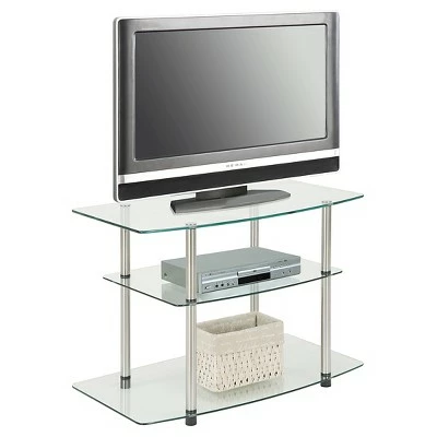 Designs2Go Classic Glass TV Stand from Breighton Home is the perfect complement to any living room decor. Featuring an open modern design that allows for easy cable management and 3 spacious glass shelves that will give you plenty of room for all of your media components. Surely will provide years of enjoyment