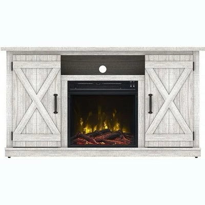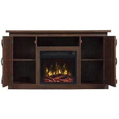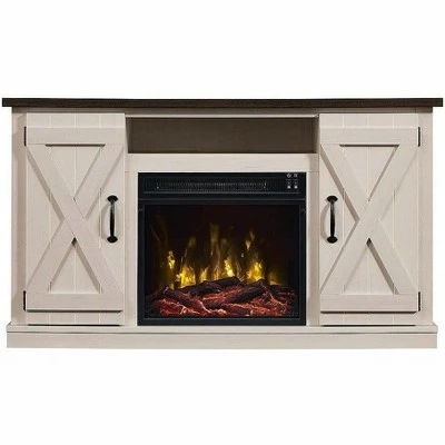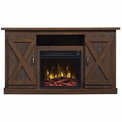 The Killian Electric Fireplace Media Console in Espresso speaks to a charming farmhouse and cottage-inspired aesthetic. For added appeal, barn-door cabinets with “X” styled mullions add a visual element to the door fronts. The Killian offers an open shelf to accommodate all of your media needs, as well as two side cabinets with adjustable shelves for concealed storage. In the center of this attractive console is a small, yet powerful 18″ firebox with a life-like LED flame effect rising from one of two included ember bed options