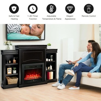 Our modern fireplace TV stand will bring both elegance and warmth to your home! The electric fireplace has 2 heating options to choose, which can not only provide fast heating, but also save energy. A timer can be set from 1 to 8 hours to turn off the fireplace automatically. The realistic flame effect can create a warm and sweet atmosphere. And there are 5 different levels of brightness and 3 colors of the flame for you to choose. As for quality, this fireplace TV cabinet is made of high quality MDF with NC paint, ensuring great stability and long service life. The spacious desktop fits up to 40” flat screen TVs while the open shelves offer roomy and classified storage space for your books, DVDs, video or game collections. Specification: Color of TV Stand: Black / White / Brown. Material: MDF + Steel + Glass. Product Dimensions of TV Stand: 70” x 11” x 45” (L x W x H). Product Dimensions of Fireplace: 28.5” x 6” x 21” (L x W x H). Voltage: 120 V / 60 HZ. Power: 750 W / 1500 W. Heat Setting: 62°F – 82°F. Heating Area: 400 Square Feet. Timer: 1 – 8h. Net Weight of TV Stand: 97 lbs. Net Weight of Fireplace: 27.5 lbs. Weight Capacity of Tabletop: 44 lbs. Weight Capacity of Each Shelf: 22 lbs. Package Includes:. 1 X TV Stand. 1 X Electric Fireplace. 1 x Remote Controller. 1 X Instruction.