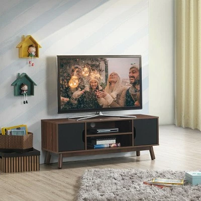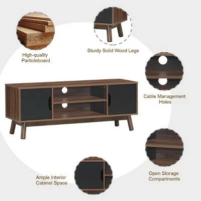 - Durable & Stable Construction: Made of high quality engineered wood, this TV stand is corrosion and wear resistant, which ensures lasting durability without easy deformation and scratch. 4 wood legs conform to principle of mechanics with a strong load-carrying capacity, ensuring the structure is stable and not easy to wobble.