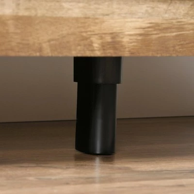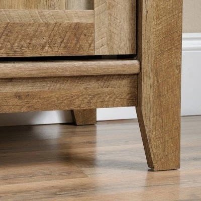 The television won’t be the only thing with all eyes on it when it sits on top of this credenza from the Dakota Pass® collection. It accommodates up to a 70″ TV making it perfect for entertaining all your friends and family. It features three adjustable shelves and hidden storage behind each of the sliding doors for movies, games, and more! Finished in Craftsman Oak®, this TV stand will give your living room a stylish country upgrade.