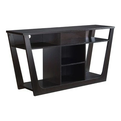 The TV stand plays a nostalgic role as the slant silhouette suggests a 60’s home interior style. This is reminiscent of the American cartoon sitcom about a Utopian tomorrow where people have a three-day workweek. You may not be living that future just yet, but with a stand like this, you can dream.