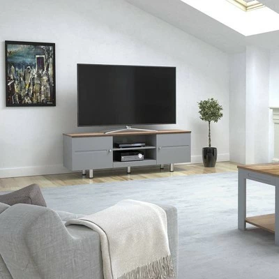 FS1500WSSG-A (White Sands) is a fashionable, ready to assemble TV Stand in Satin Gray finish with Driftwood top. The stand supports a TV up to 110 lbs., as well as AV components up to 22 lbs. on each lower shelf. The shelves are great for a Cable Box, Receiver, DVR, Blu-ray player, Game Console, Speaker, Apple TV, Sonos devices, or décor items. Installation is kept neat via the built-in cable management holes on the back panel. This easy-to-assemble stand accommodates most TVs in these sizes: 32 inch, 37 inch, 39 inch, 40 inch, 42 inch, 46 inch, 47 inch, 50 inch, 52 inch, 55 inch, 58 inch, 60 inch, 65 inch, 70 inch. Assembled dimensions: 59.06-inches (width) x 17.17-inches (depth) x 19.69-inches (height). IMPORTANT: For TVs with wide-spread feet, please measure the TV base to assure fit on this TV stand. To eliminate this problem. replacement pedestal style TV bases are available separately.