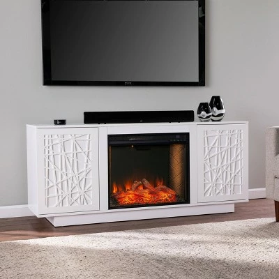 Upgrade the look of your media space with the Aiden Lane Flonsland Alexa Smart Fireplace with Media Storage. A unique design decorates push-to-open doors, while adjustable shelves neatly organize your movies and books. Working with or without heat for year-round enjoyment, this electric fireplace features voice-enabled technology and realistic LED flames. Bring home cozy ambiance and convenient storage with this Alexa smart fireplace.