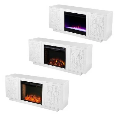 Put a modern twist on your media space with the Aiden Lane Flonsland Color Changing Fireplace with Media Storage. A unique design decorates push-to-open doors, while adjustable shelves neatly organize your movies and books. Working with or without heat for year-round enjoyment, this electric fireplace features a chic faux crystal fill and color changing flames. Bring home cozy ambiance and convenient storage with this freestanding fireplace.