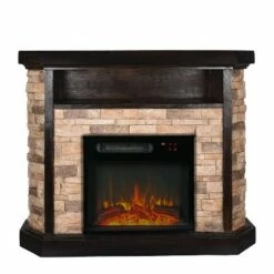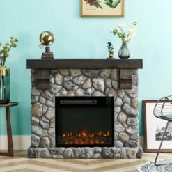 Brothye Color Changing Fireplace with Faux Stone Gray – Aiden Lane