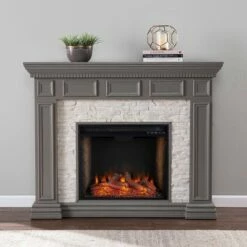 Brothye Alexa Smart Fireplace with Faux Stone Gray – Aiden Lane