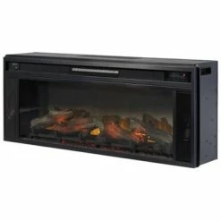 43" Electric Fireplace Insert with Log Set Look Black – Benzara
