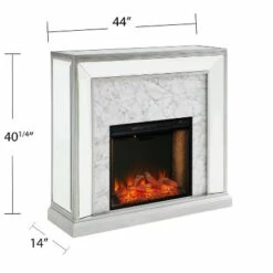 Tynchel Mirrored Faux Marble Touch Panel Fireplace Antique Silver – Aiden Lane