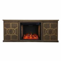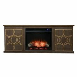Tiessil Smart Fireplace Console with Media Storage Brown/Gold – Aiden Lane
