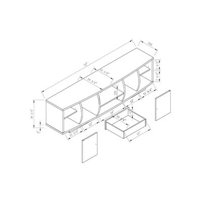 - Dimensions (Overall): 19.25 inches (H) x 72 inches (W) x 16.75 inches (D)