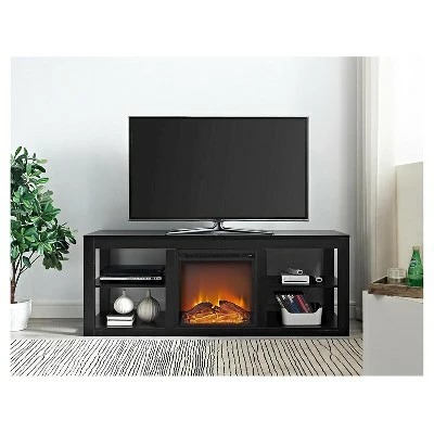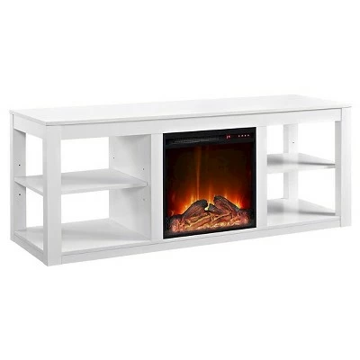 When you’re looking to update your old TV stand with something modern and fresh, the Room & Joy George Console Fireplace presents the perfect opportunity. The classic slim parsons styling is carried throughout this TV Stand creating 4 large open compartments for your AV components. The George Console is sturdy enough for your big screen but elegant enough for your living room. In the center is an 18″ fireplace insert that exudes a realistic glow using LED lights and patent reflector technology. Use this fireplace to warm up a 400 sq. ft room or just turn on the flames without the heat and enjoy the beauty of it even in the summer. TV Stand hold up to a 65″ flat panel TV and measures to be 22.5″h x 59″w x 18.9″d. The Room & Joy George Console Fireplace requires assembly upon delivery.