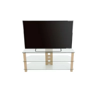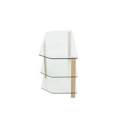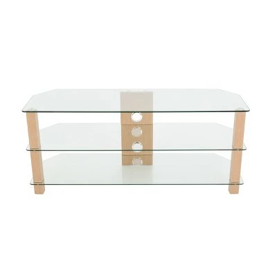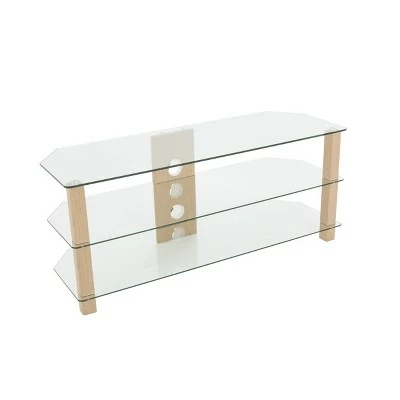 Valletta TV Stands are stylish solutions with sleek, sturdy wood legs and tempered glass shelves. The shape allows placement flat against a wall or into a corner, providing ideal viewing angles for a larger area. The two lower shelves are perfect for AV components such as Digital Receivers, DVRs, Blu-ray, Soundbars, or Gaming Consoles. Cables can be routed via the built-in cable management with entry and exit points along the length of the center column so that all power and connectivity leads can easily reach the equipment in a neat and organized fashion. For TV Sizes: 32, 37, 39, 40, 42, 43, 46, 47, 50, 55, 58, 60. For TVs with wide feet, please measure the width of the feet to ensure it will fit on the stand.