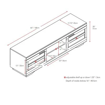 - Dimensions (Overall): 20 Inches (H) x 66 Inches (W) x 18 Inches (D)