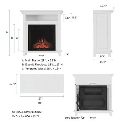 - Dimensions: Fireplace: (L) 27″ x (W) 12.40″ x (H) 29″; Cord: 6′
