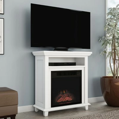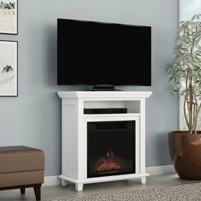 Lounge in warmth while enjoying a movie with this Hastings Home Electric Fireplace TV Stand. This freestanding fireplace provides enough energy-efficient LED heat to keep you comfortable in rooms up to 400 square feet large. The furniture offers enough space to fit a 32-inch flat-screen TV. There’s a fixed shelf above the heater to store an electronic component, with cord management located in the back for discreet cable organization.
