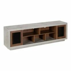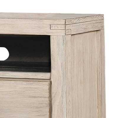 Bring the country life to your home with the farmhouse feel of this Hayes Rustic Three Drawer TV Stand. This media/TV stand is the perfect spot to house a smaller television in a compact space. A cool wire brushed finish with a distressed texture that brings out the beauty of the wood. Three quality constructed drawers on center glides provide you with plenty of space for media and small devices. Enjoy efficient wire management through a cutout back space.