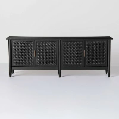 Update your gathering space with just the right amount of understated style and eye-catching texture with this Wood & Cane Media Console from Hearth & Hand™ with Magnolia. Crafted from wood in a solid finish for a stylish look, this storage cabinet showcases a clean-lined silhouette with cane detailing on the doors to provide a timeless, textured look that complements a variety of furniture styles and color palettes. The media console comes with storage compartments concealed by cane doors to offer enough space for DVDs, media equipment, or your favorite board games.