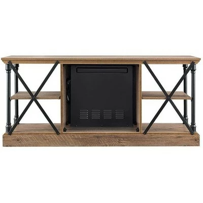 The Sheffield Electric Fireplace TV Media Stand easily introduces the ever-popular Industrial design trend into your space. This inspired design piece features an open concept with mixed metal & wood construction. Side shelves offer the perfect storage for electronics, media equipment, accessories, or decorative keepsakes. The Sheffield accommodates flat screen TVs up to 65-In in size, making for a perfect home theater setup. The 18″ firebox features a glowing ember bed and log set, create the look of a real wood burning fire without any of the hassle. Two manual operable switches on the fireplace allow you to turn on the flames and heat.
