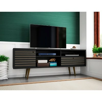The Liberty 70.86 Mid-Century Modern TV Stand is mid-century modern at its best. Quality craftsmanship and careful detailing create the ultimate blend of style, functionality, and brilliant design. A sophisticated entertainment center, the piece features open shelving, as well as two hidden compartments perfect for stashing DVDs, board games, electronics, and media accessories. Free standing and easily moved, this stand will mix well with any decor and its artful grooves will create a statement in any space.