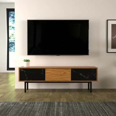 AVF FS1400SKYW-A (Skyline) is a highly stylish, ready to assemble TV Stand in walnut finish and marble-effect doors. The stand supports a TV up to 110 lbs., as well as AV components up to 22 lbs. on the lower shelf. The interior space is great for a Cable Box, Receiver, DVR, Blu-ray player, Game Console, Apple TV, Sonos devices, or décor items. Installation is kept neat via the built-in cable management holes on the back panel. This easy to assemble stand fits most TVs in these sizes: 32 inch, 37 inch, 39 inch, 40 inch, 42 inch, 46 inch, 47 inch, 50 inch, 52 inch, 55 inch, 58 inch, 60 inch, 65 inch. If your TV has wide-spread feet, please measure the TV base to assure fit on this TV stand. Assembled dimensions: 55.12-inches (width) x 15.75-inches (depth) x 17.72-inches (height). IMPORTANT: For TVs with wide-spread feet, please measure the TV base to assure fit on this TV stand. To eliminate this problem. replacement pedestal style TV bases are available separately.