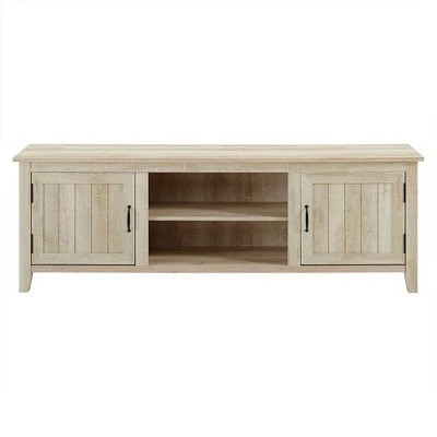 Create a living space you love with this entertainment center from Saracina Home. In a modern farmhouse aesthetic to complement your living space, this TV stand has both open and closed storage to store your media. The center shelving is ideal for your components as cord management features are in back to keep wires organized. With adjustable shelving behind the side cabinets to hide away your media, books, and more. The cabinet doors feature a beadboard finish and metal accents for a stylish, coastal and farmhouse feel. In a high-grade MDF, laminate construction showcasing a gorgeous, wood grain finish. This storage console can hold up to a 78-inch TV. Perfect for your living room, bedroom, or home office as you can style the top with plants and picture frames or for your TV.