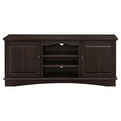 Living room storage was never so versatile with Saracina Home’s 57″ Modern Storage Doors TV Stand. This media console hosts two deep storage doors that swing open, but are so subtle in their design, you’d never know the small space friendly unit had so much to offer! Three center shelves are available to show off your favorite electronic components while the deep doors let you keep the TV stand nice and tidy. And with cord management, you’ll never lose track of cables.