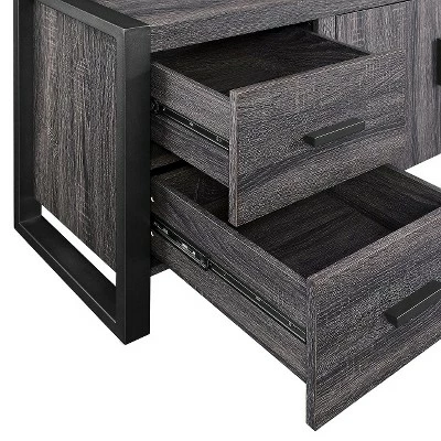 - Material: Gray Wash MDF Composite (Medium-Density Fiberboard), Metal (Frame)