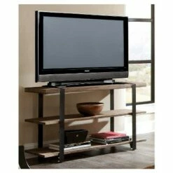 Modesto Media/Console table is versatile for any space. Crafted for both large and small areas, this sturdy design will keep you organized or showcase your 40″ television in a sleek profile. The rustic, natural finish and design provide an industrial element to your room. Featuring exquisite workmanship of solid wood tops with wrapped metal strap and metal legs that will last for years to come. Natural wood variations such as cracks, and knots add to the piece’s character.