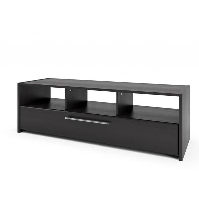 Upgrade your living room or entertainment space with the Naples TV and component unit. This popular TV bench can accommodate most TVs up to 75″ and offers the ultimate open and hidden storage space. The top open shelf offers room for three components while the extra long drop-down cabinet face will hide away any clutter. This TV unit is enhanced with a long metal handle and a sleek faux-wood grain finish. Neatly tuck your wires away with the cable management backing.