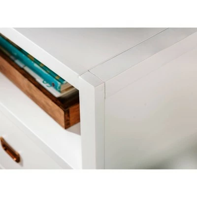The Peggy Media Center is the perfect piece to hold all your entertainment essentials. The media center features a white finish accented by rose gold drawer pulls. Two drawers provide hidden storage for remotes and games, while the open shelf is ideal for players and game consoles. Wire management holes keep cords organized and out of the way. The spacious top places your large television front and center. Sturdy and durable design.