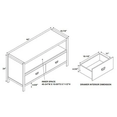 - Compartment 1 Type: Drawer (2): 4.75 Inches (H) x 18.13 Inches (W) x 11 Inches (D)