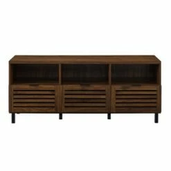 Visconti Boho Slat Door Storage Console TV Stand for TVs up to 80″ – Saracina Home Dark Walnut