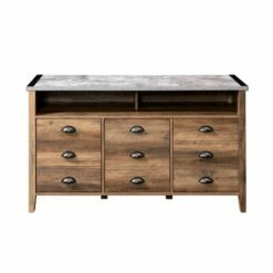 Industrial Farmhouse A Frame Sawhorse TV Stand for TVs up to 55″ – Saracina Home Rustic Oak
